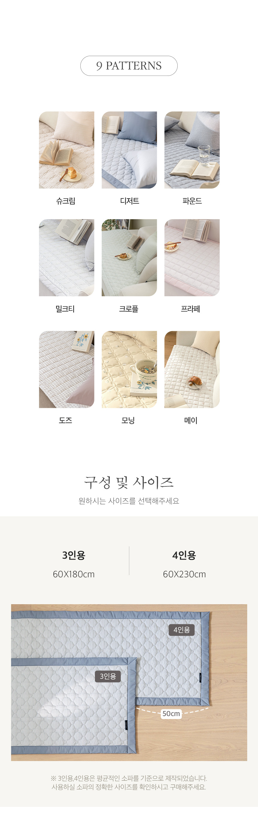 | 치수 | 3인(60X180cm),4인(60X230cm) | ||