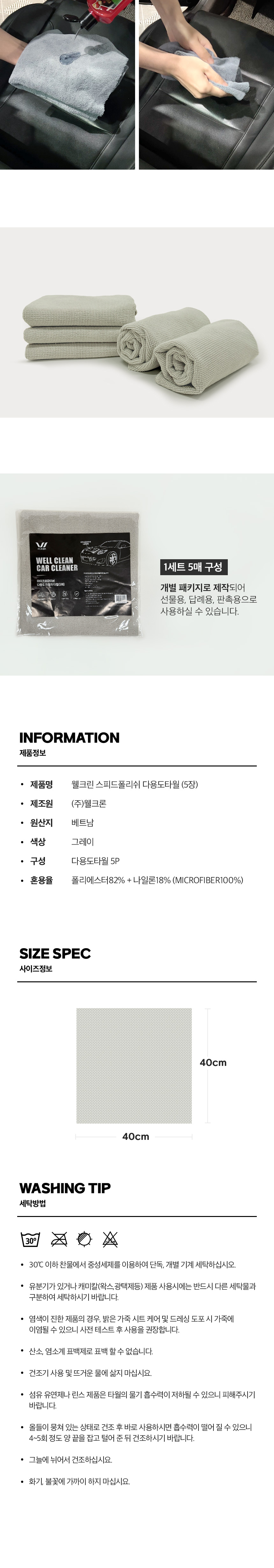 | 치수 | 다용도타월: 40X40cm | ||