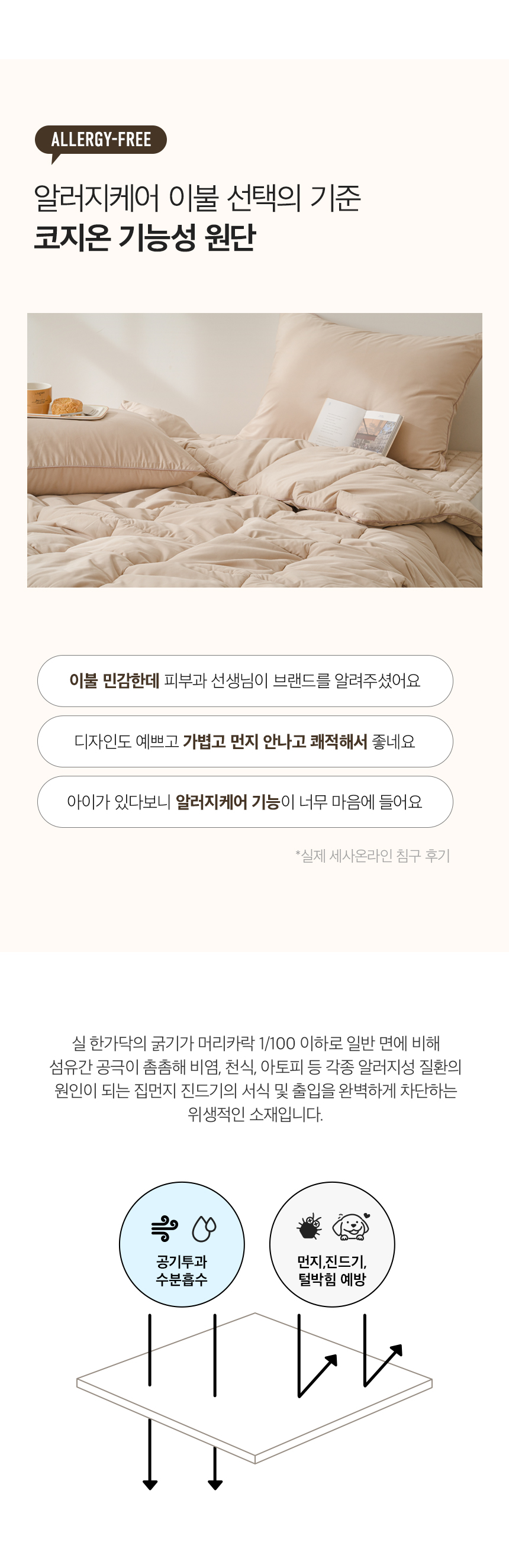 | 제품 소재 | 알러지케어 기능성 원단 | ||
